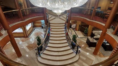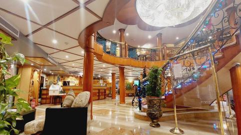 Ausstattung: Das Schiff bietet eine Rezeption, ein Restaurant, eine Bar, eine Sauna, ein Massageraum, ein Sonnendeck mit einem Außenpool und Sonnenliegen- und Schirmen und eine Lounge.