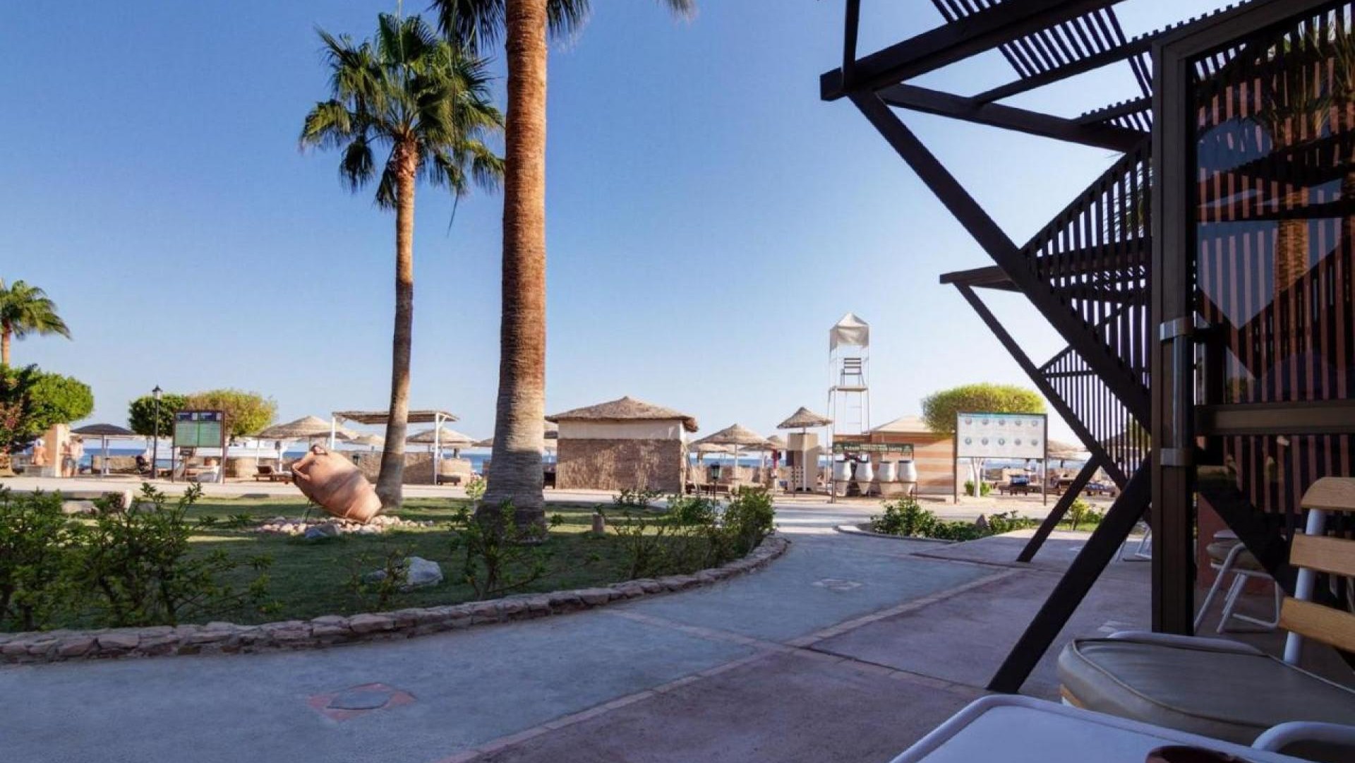 Lage: Das Amwaj Beach Club Abu Soma liegt malerisch an der Küste des Roten Meeres, etwa 45 Minuten südlich von Hurghada. Das Resort befindet sich in der ruhigen Bucht von Soma Bay und bietet direkten Zugang zu einem privaten Sandstrand, der zum Entspannen einlädt. Die Umgebung ist geprägt von kristallklarem Wasser und farbenfrohen Korallenriffen, die sich ideal zum Schnorcheln und Tauchen eignen. In der Nähe können Gäste Kitesurfen oder Bootsfahrten unternehmen, um Delfine in ihrem natürlichen Lebensraum zu beobachten. Die abgeschiedene Lage verspricht Ruhe und Erholung, während die Sehenswürdigkeiten der Region dennoch gut erreichbar sind.
