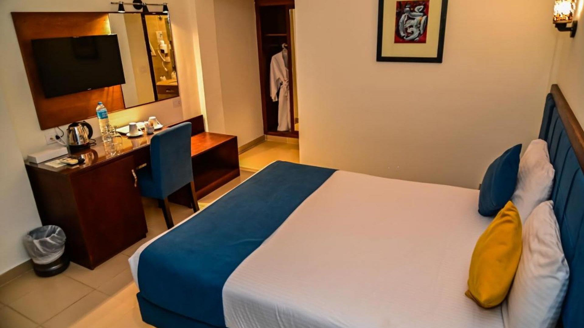 Zimmer / Unterbringung: Die Standardzimmer (ca. 30 m²) verfügen über ein eigenes Bad mit Dusche/WC, Hygieneartikel, Haartrockner, Klimaanlage, TV und Telefon, Safe und einem Balkon oder Terrasse.
