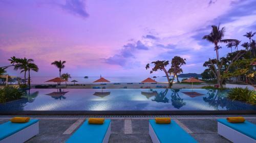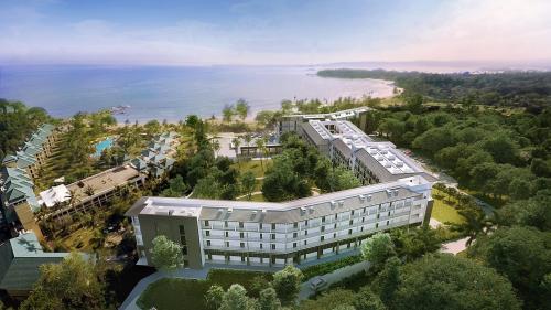 Lage: Das im Nordosten von Bintan gelegene Cassia Bintan bietet eine ideale Ausgangslage, um die Schönheit der Insel zu erkunden. Nur etwa 60 Minuten mit der Fähre von Singapur entfernt, ist das Resort bequem erreichbar und ein perfekter Rückzugsort vom Trubel der Stadt. Der weiße Sandstrand liegt direkt vor der Tür und lädt zu entspannten Stunden am Meer ein. In unmittelbarer Nähe befinden sich zahlreiche Freizeitmöglichkeiten wie Wassersportaktivitäten, Golfplätze und lokale Restaurants, die authentische indonesische Küche bieten. Sehenswürdigkeiten wie die Lagoi Bay und der Safari Lagoi Park sind nur wenige Kilometer entfernt und machen das Cassia Bintan zu einem hervorragenden Ausgangspunkt für Erkundungen und Erholung.